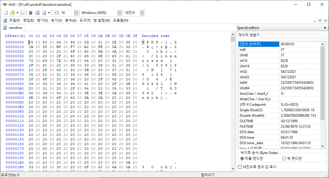파일을 열어보면 pdf가 한칸 씩 띄어져 있다